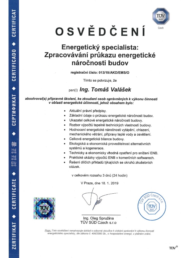 • Poradenství v oblasti úspor energií – členství v Asociaci energetických specialistů