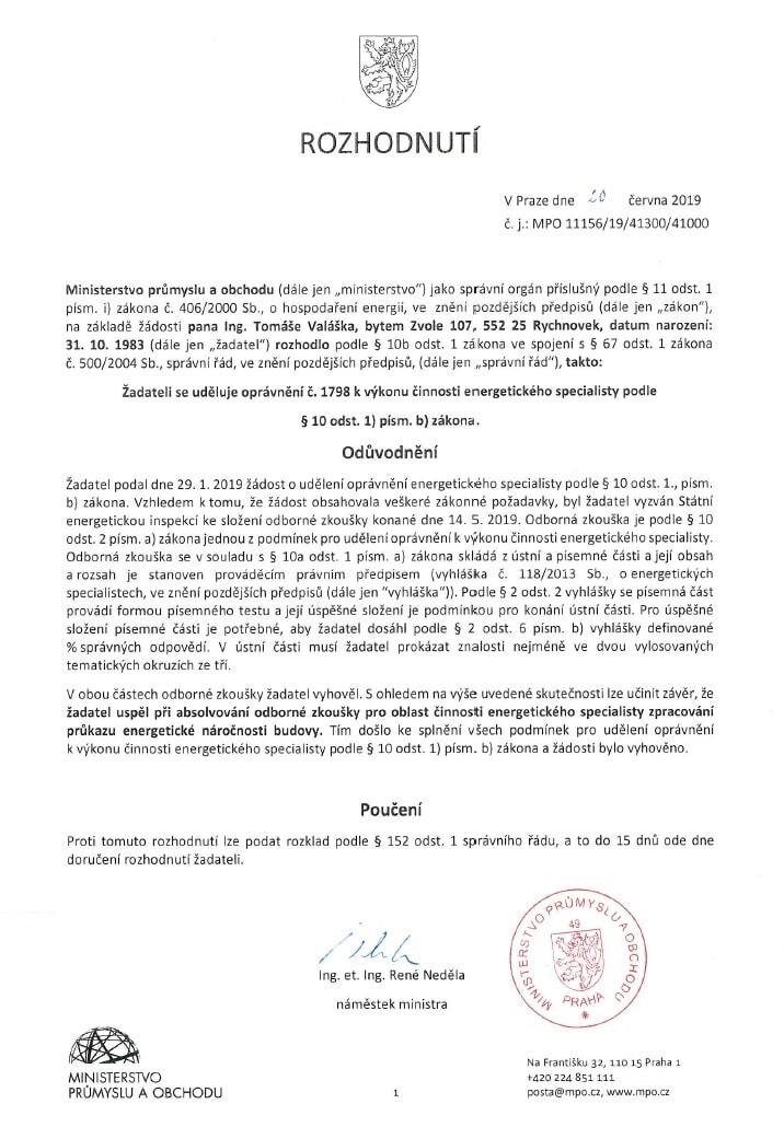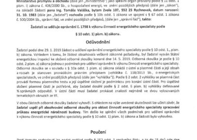 • Zpracování průkazu energetické náročnosti budovy – na základě oprávnění č.1798 – uděleno Ministerstvem průmyslu a obchodu